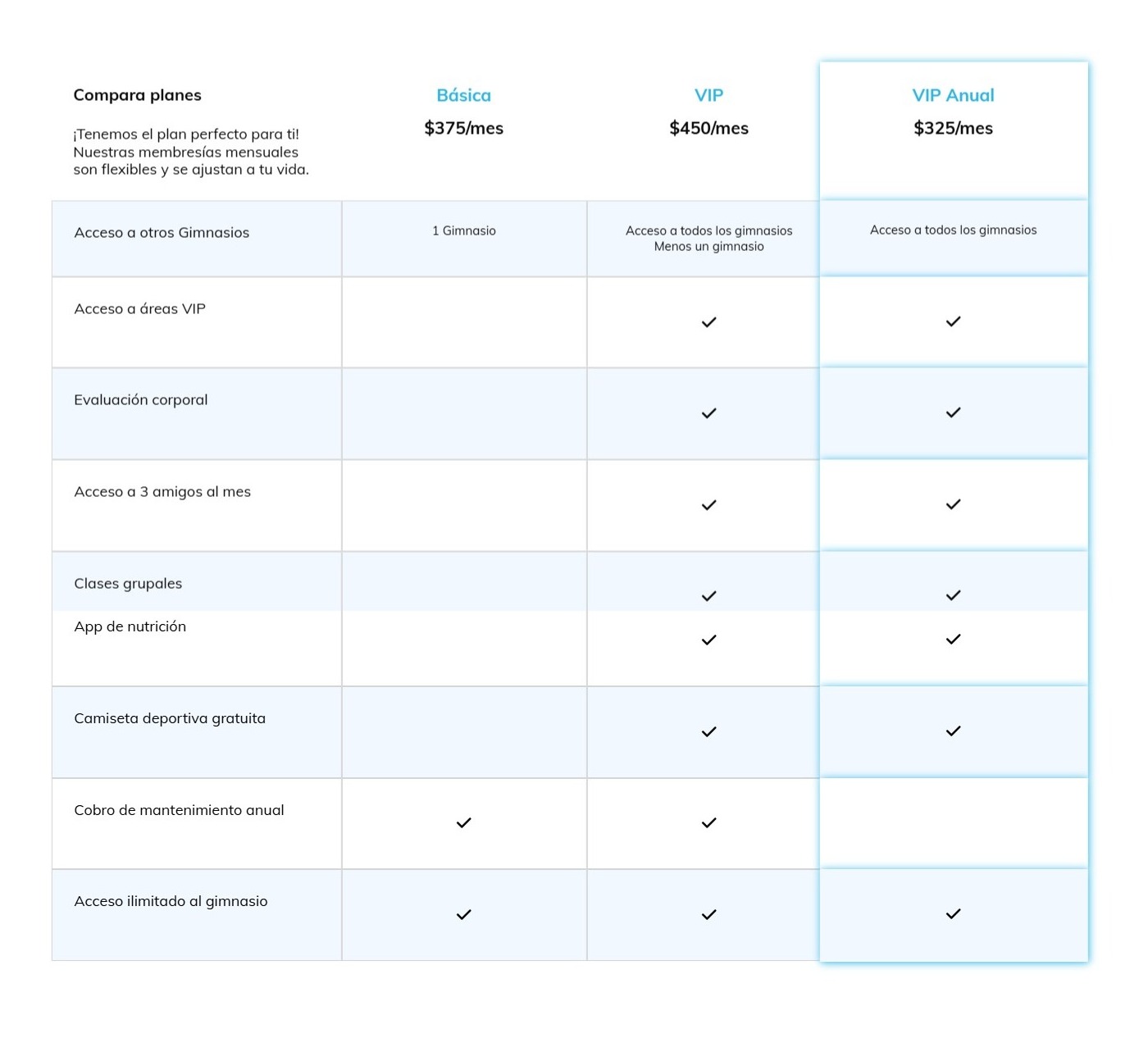 Todas las cuentan con el mejor equipamiento y lo necesario para que desarrolles todo tu potencial y saques provecho de todos los beneficios que tu membresía ofrece.